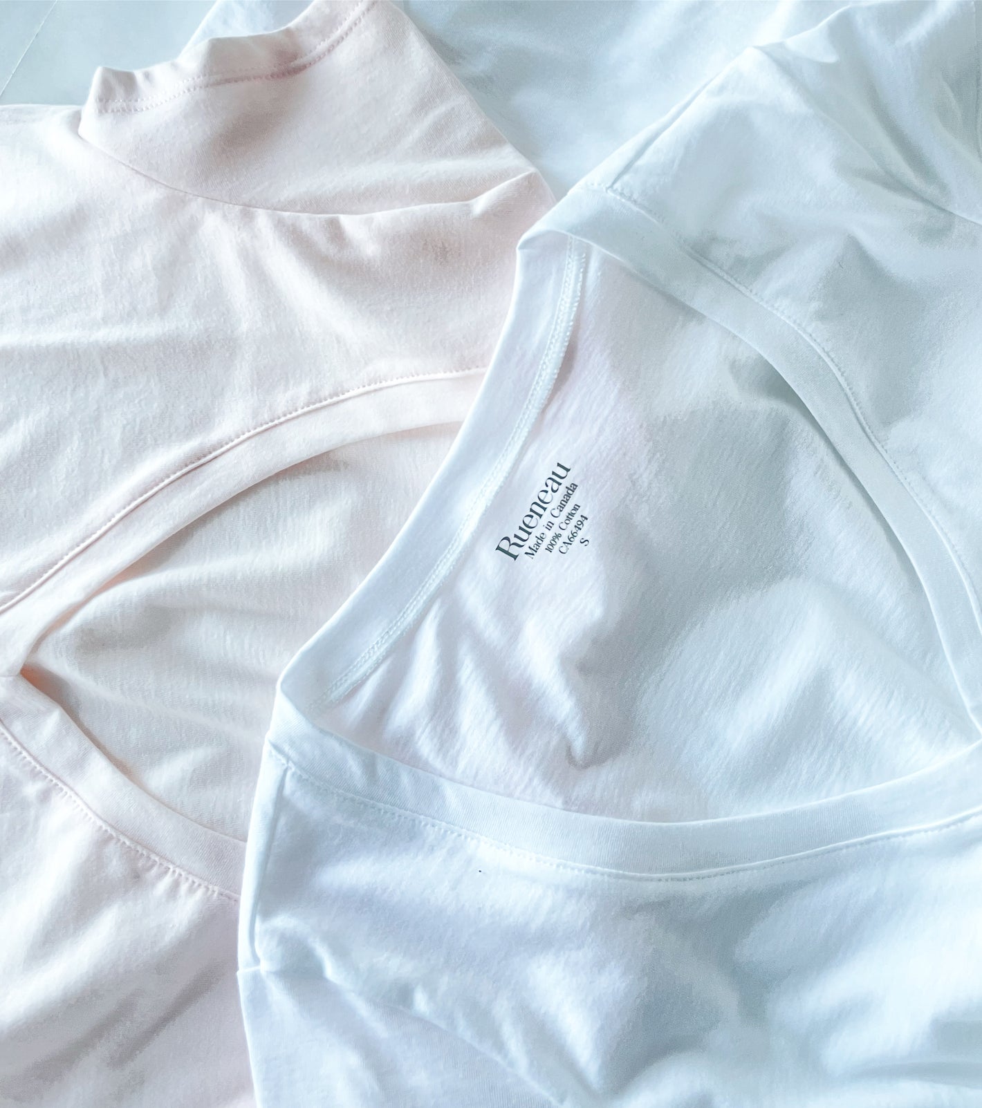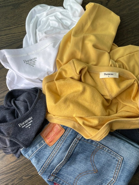 Fabric drives every decsion we make at Rueneau. We source best-quality natural frabics from Canada and beyond. We seek out natural fabrics that ensure a gorgeous fit, feel and drape.
