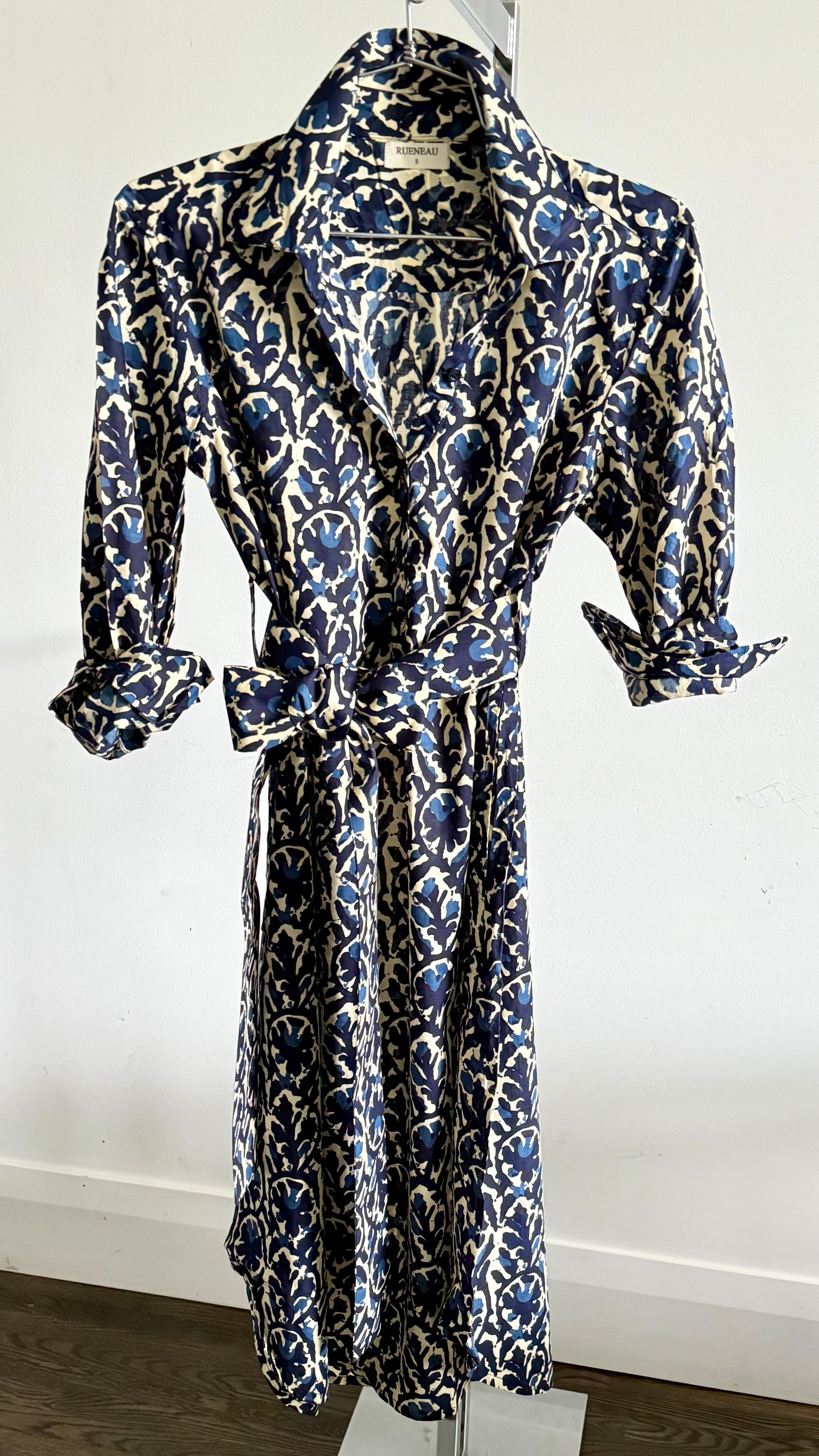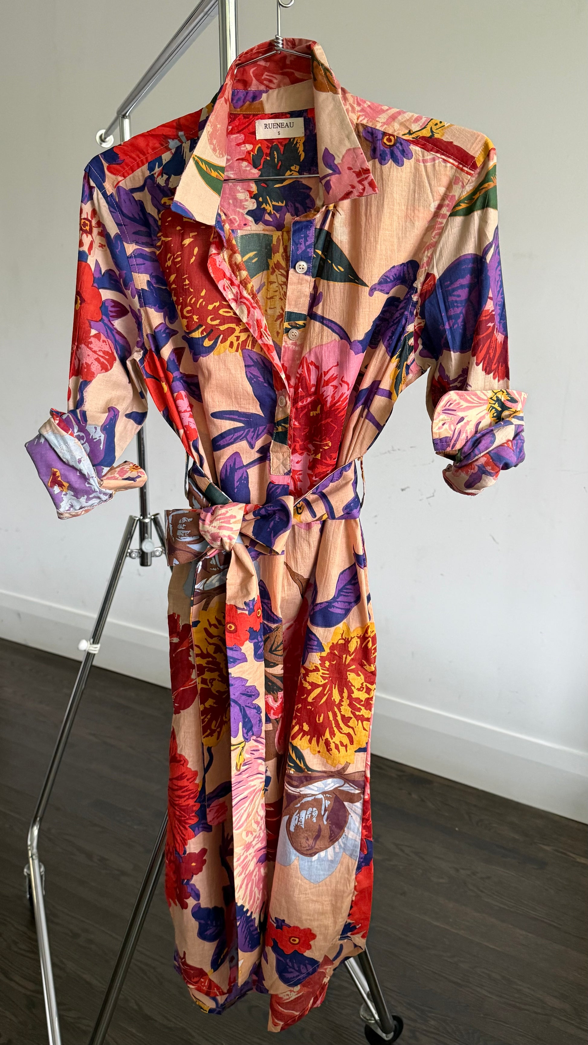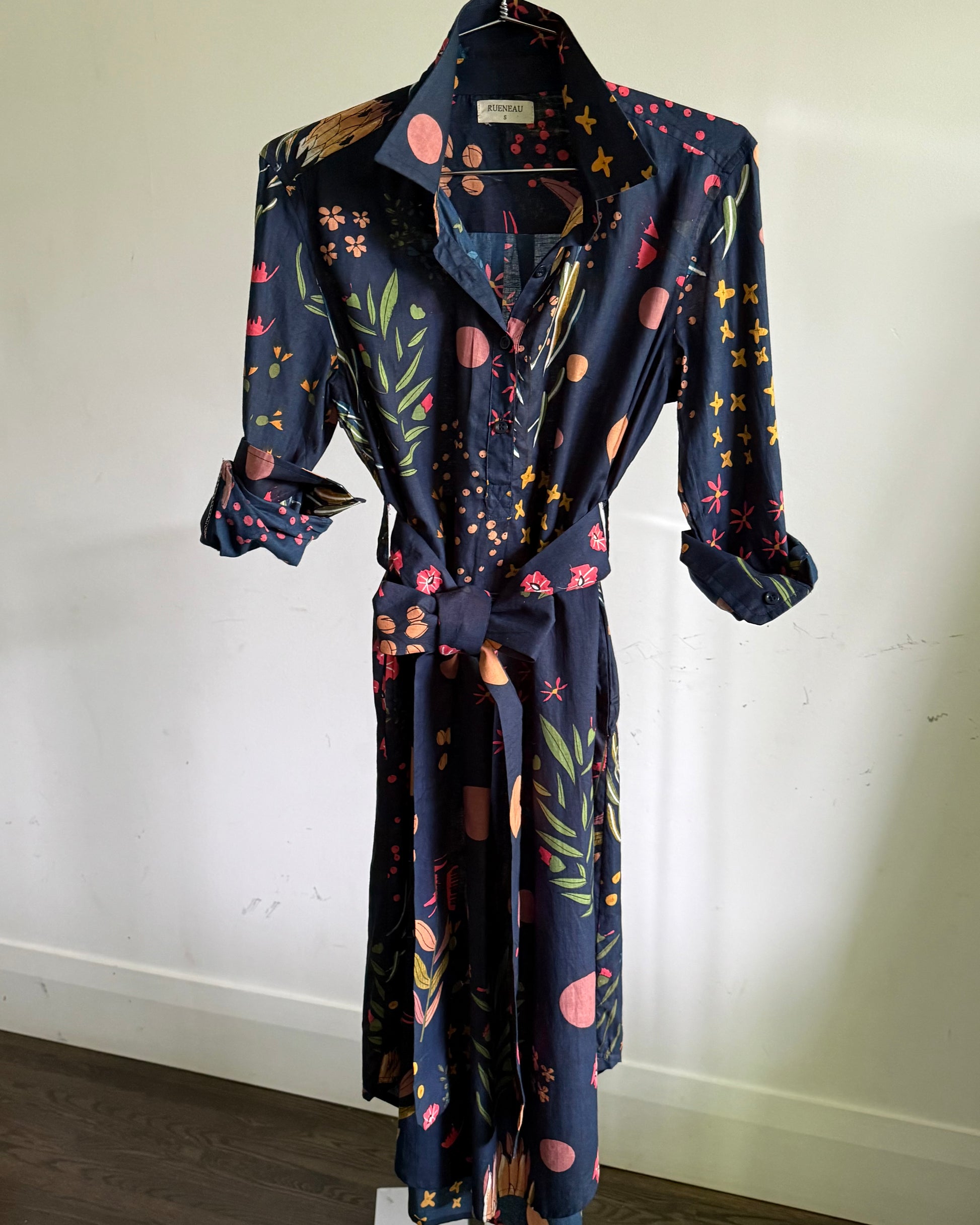 100% Cotton shirt dress with pockets and an optional belt. A classic wardrobe essential. Wear it casually with no belt, for a shift dress silhouette, or wear with any belt to change the look. Over the knee length on most, with a hip-skimming cut and a stiff collar for popping.